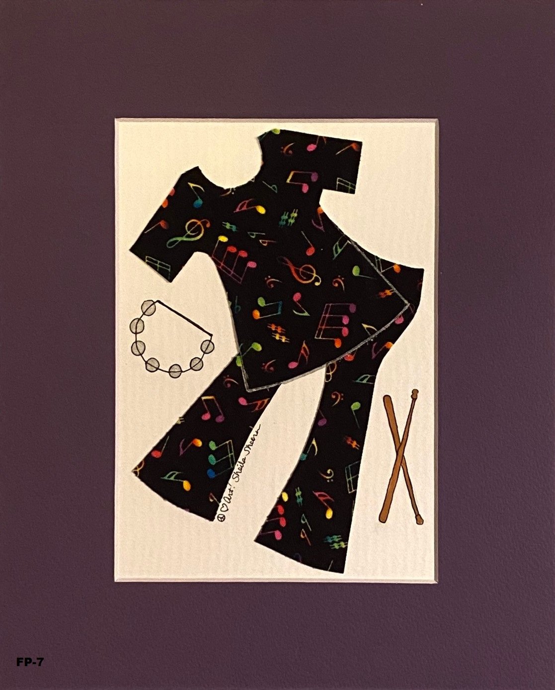 Cute, fun, and fashionable! These multi-media art pieces are great for your dressing room, a teen's bedroom, and especially for someone who just loves clothing design! The 8"x10" mats are color coordinated with the outfits that are in the 4"x6" opening (the inventory code shown is not on the original piece). Ready for your frame.