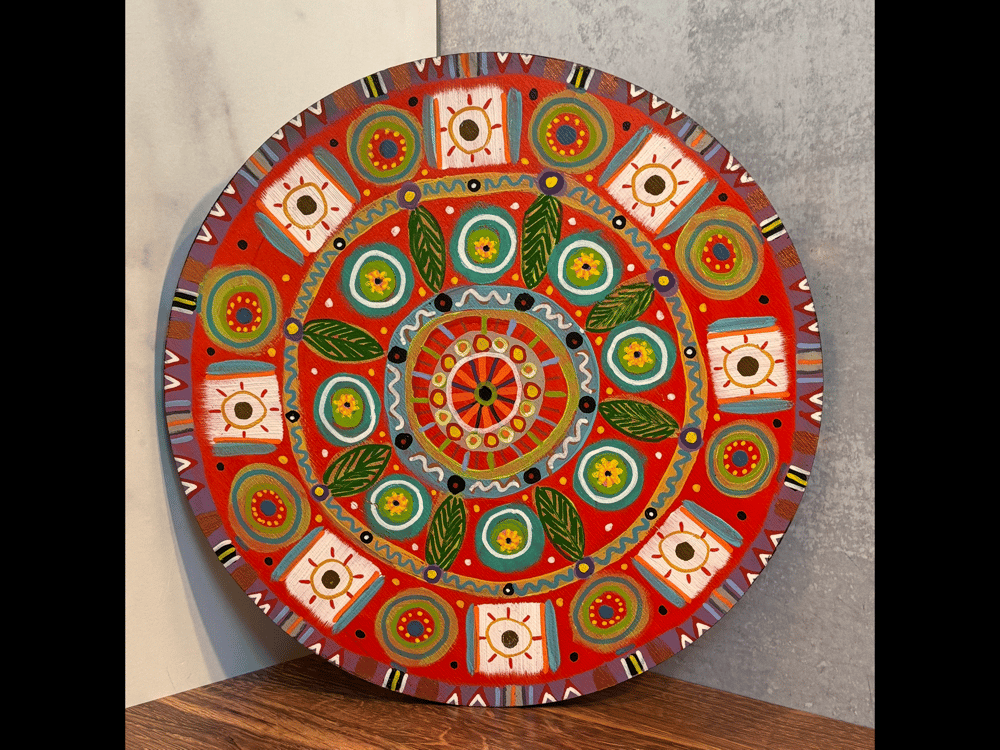 Original 11 3/4" acrylic painting on 3/4” thick round wood panel. Sides are painted.