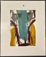 Matted and framed in a minimalist black 8”x10” frame, the paintings are done in cold wax and oil. Photo labels that appear here will not be on the mats.