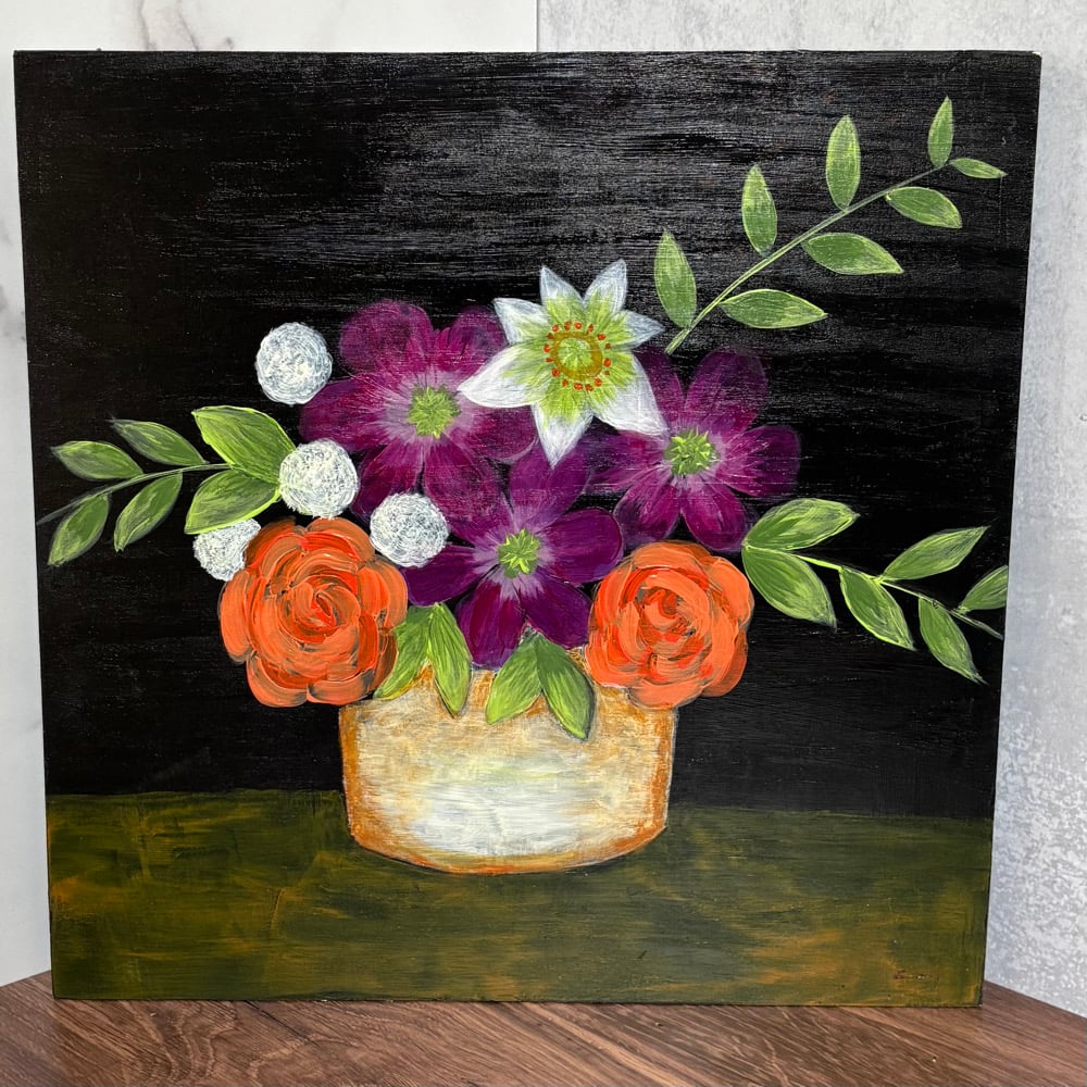 Original 16" x 16" acrylic painting on cradled wood panel. Sides are painted.